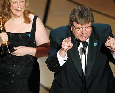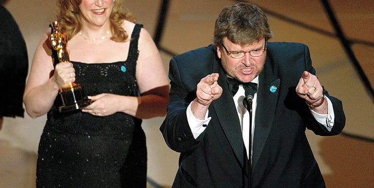 Then came Bowling for Columbine (2002), a fearless look at American gun culture, which won the Academy Award for Best Documentary. In Fahrenheit 9/11 (2004), Moore aimed straight at President George W. Bush and the Iraq War, breaking records as the highest-grossing documentary of all time.